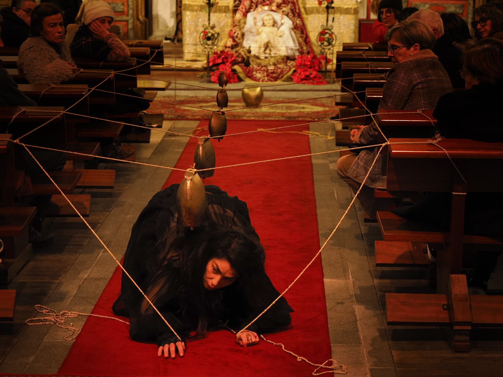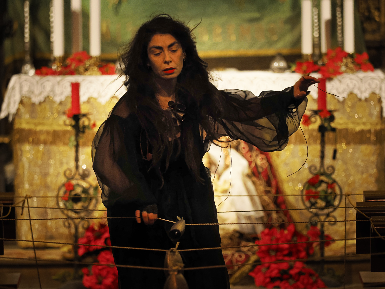 Acogemos una acción sonora de la reconocida artista interdisciplinar italiana Mónica Mura. La artista, cuya trayectoria combina la performance art y el artivismo, presentará Cuntzertu Pro Sonallas, una propuesta que fusiona la tradición cultural y la creación contemporánea. La acción sonora de Mura utilizará cuerdas y cencerros tradicionales de Cerdeña, piezas forjadas por maestros herreros que, en la antigüedad, se utilizaban para realizar gestos apotropaicos y alejar los malos espíritus. Esta pieza forma parte de una serie de conciertos site-specific realizados en los últimos años entre España e Italia, que abordan los ritos ancestrales y las exclusiones de género en las culturas tradicionales.